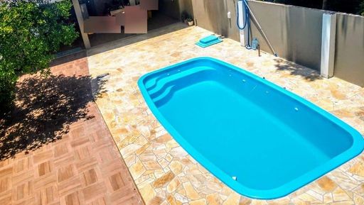 Andar inferior pronto para comércio; Closet; Espaço gourmet; Cinco banheiros; Piso porcelanato; Piscina 7,5m x 3,5m; Ares-condicionados; Móveis sob medida; Churrasqueira; Forno a lenha; Lavanderia; Alarme; Câmeras de segurança; Sacada; Energia solar; Poço artesiano; Depósito; Garagem coberta para dois carros, pátio para mais 4 descobertos;